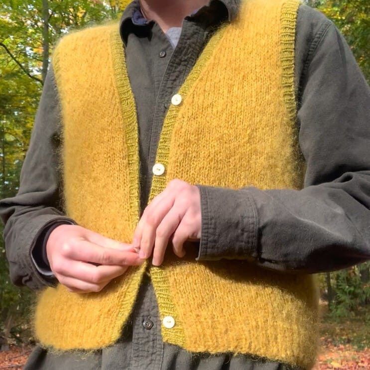 a golden yellow vest with 100% mohair i scored from an antique store for super cheap. this is my first project with buttons and i’m pretty pleased with it! (calidez vest by jenjoyce design)