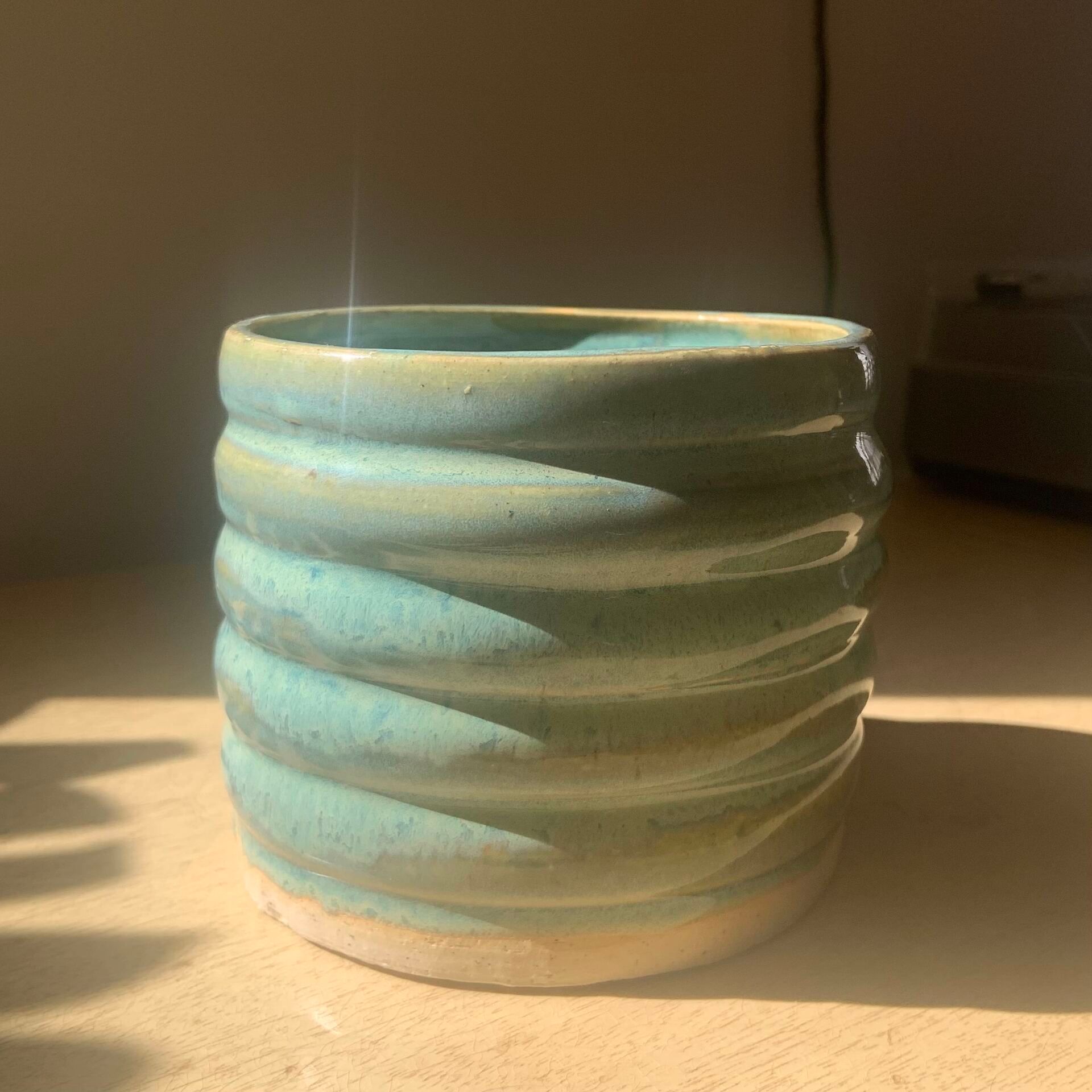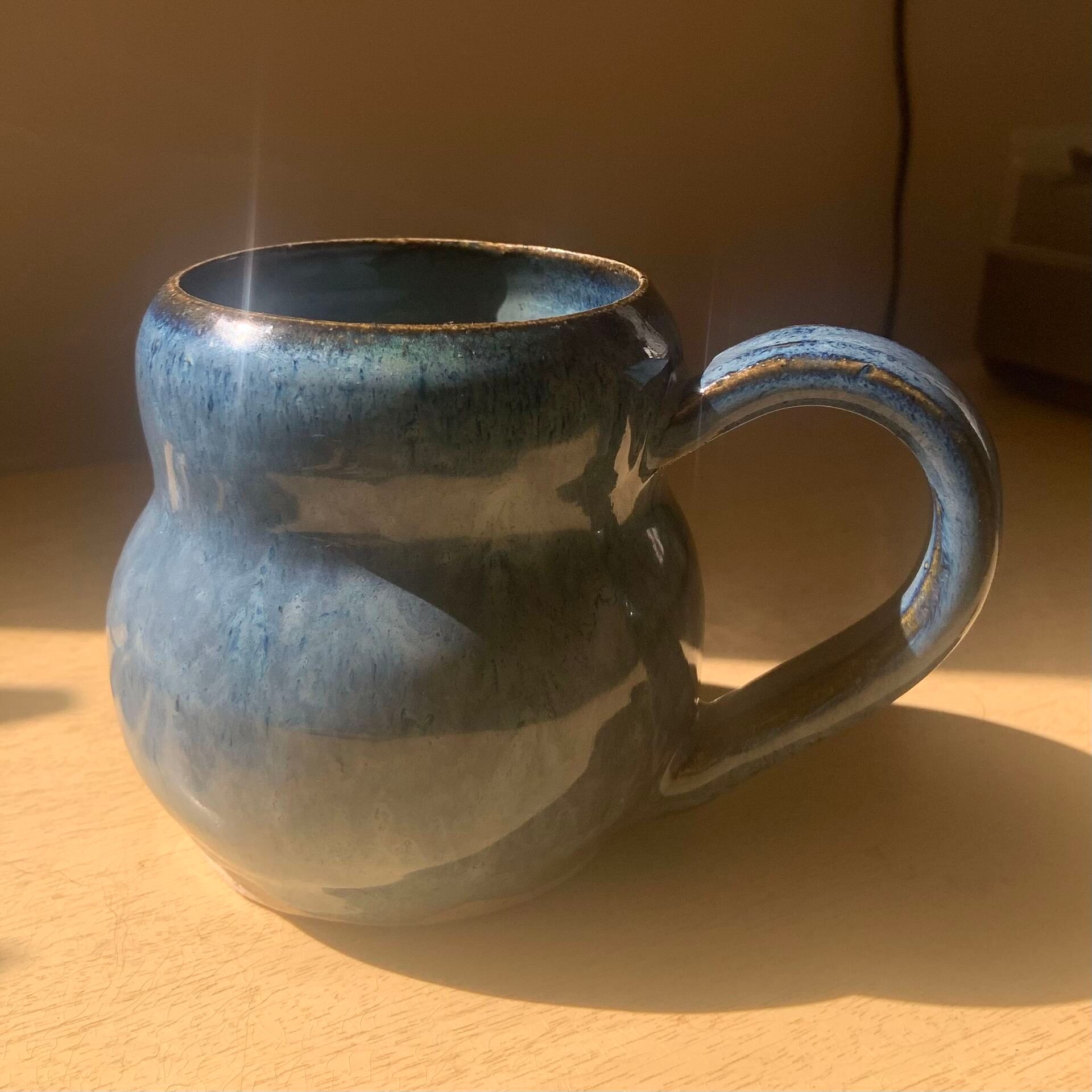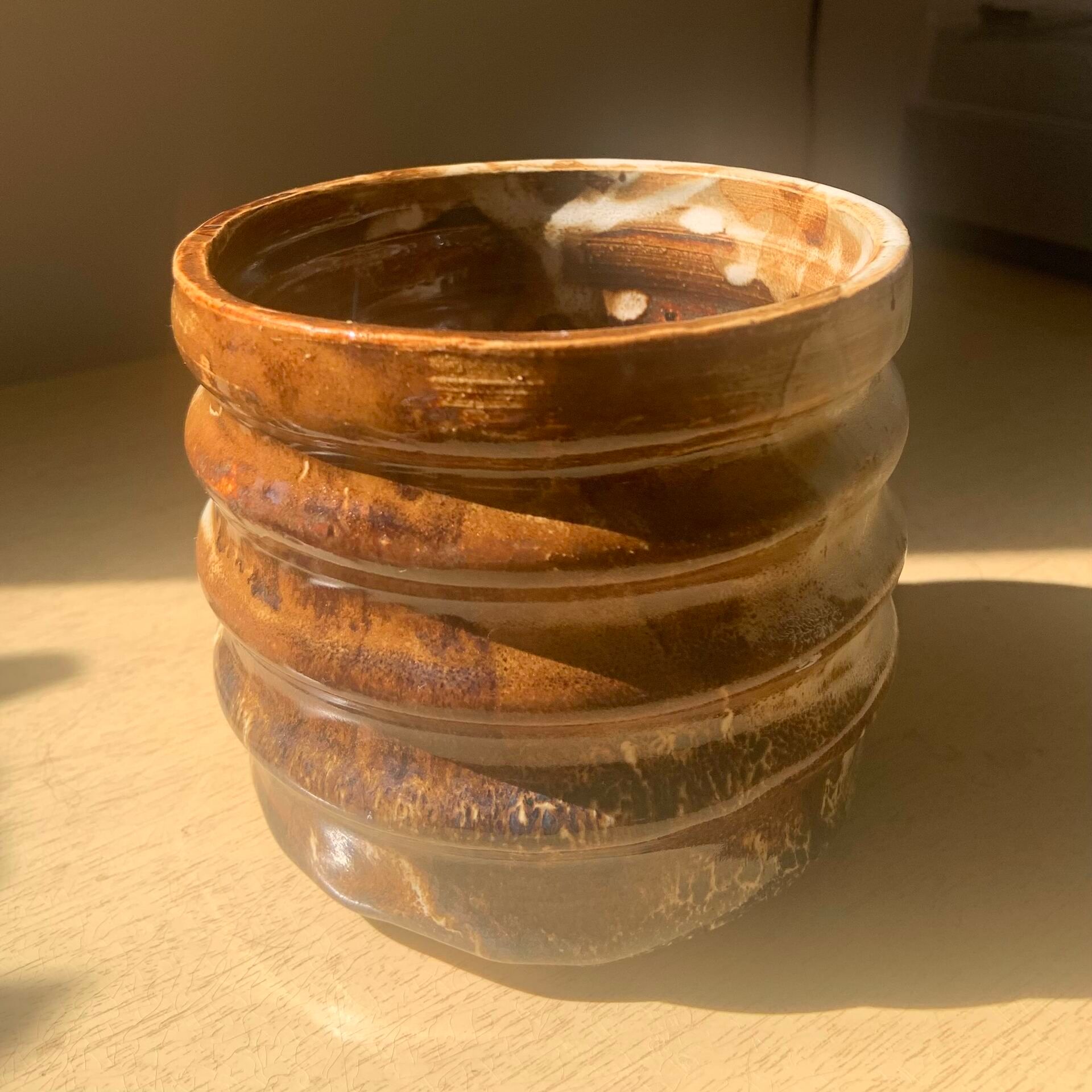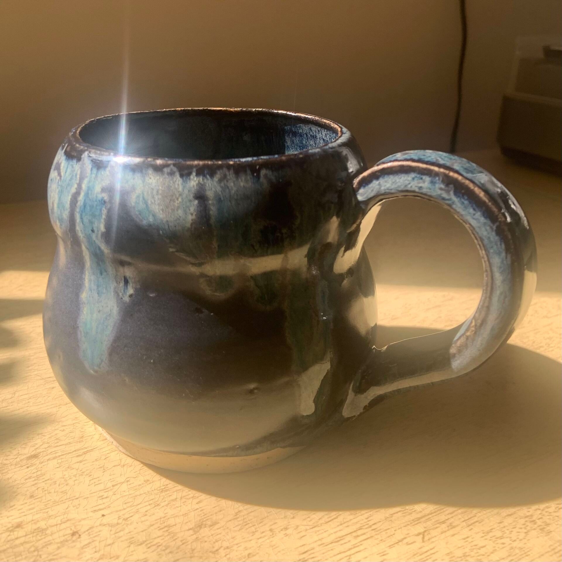 funky cup with glaze that unintentionally turned out like swirling coffee and cream